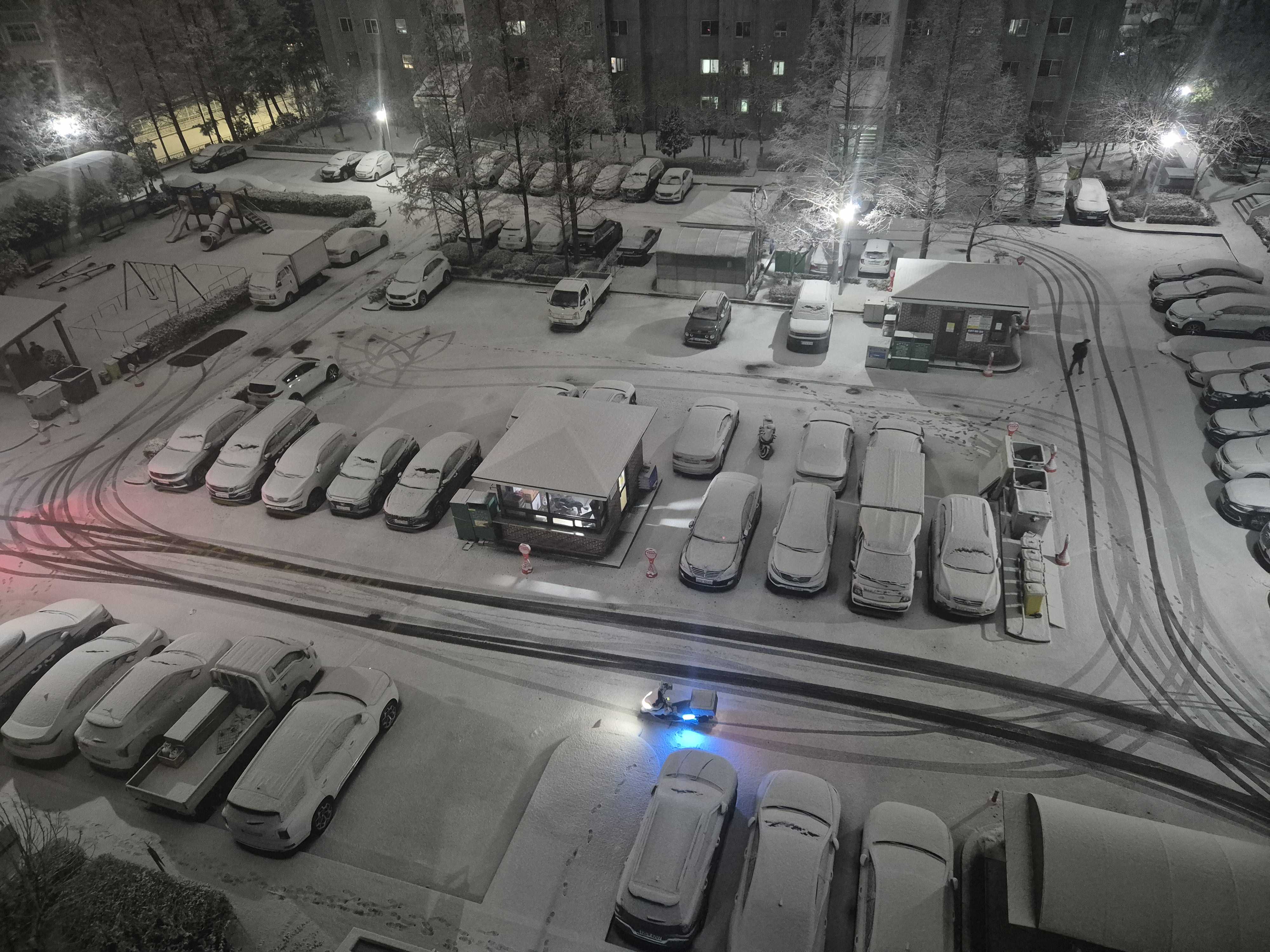 昨日の夜は、天安にも大雪注意報が出た。