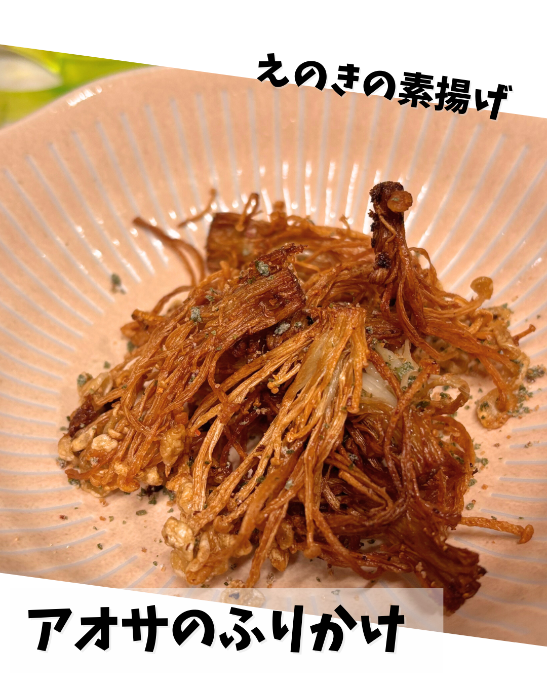 夜ご飯の一品に、 エノキの素揚げ作りました! 仕上げにアオサのふりかけをパラリ✨娘(6才)にちょっと味見してみて〜と渡したら…さいこぉ〜✨👍とのお言葉を頂きました😋✌️パリッと香ばしいえのきに、アオサの香りと塩気が加わって…うま味爆発!!ごはんのおともにも、おつまみにもぴったりな一品になりました♪子どもも「もっと食べたい!」と気に入ってくれて嬉しかったです♪※このふりかけは、香りと塩気のバランスが絶妙で、いろんな料理に使いやすいですよ😊使ったふりかけはこちら💁♀️スパイス [宮島醤油] 彩り香るスパイス あおさ 醤油風 45g /宮島醤油 料理3本入りはこちら↓↓スパイス 3本セット [宮島醤油] 彩り香るスパイス あおさ 醤油風 45g×3本 /料理