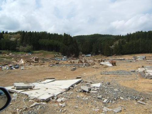 目印が何にもなくなって、家の基礎のコンクリートから家の形を思い描き、たぶんここだろうと言うことです。