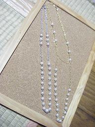 みなさん、ヾ(´ω`=´ω`)ノ オハヨォ 今朝は曇りで湿度100%の朝です><;起きてちょっと動いただけでもう汗が出てきました。なので、9月だというのに山下清ばりにタンクトップと半ズボンでいますw台風の影響なんですね;;進行が遅いようで、まだしばらくこんな天気が続きそうですね・・昨夜、あまりの寝苦しさにエアコンをかけて寝ましたよ。 ★ ★ ★ ★昨夜、何気にテレビを見ていたらその番組で女子力を上げる特集なんぞというのをやっていました。あまり興味もないので、チラチラ見ていたのですが「お、これはいいかも?」と思える話というか、物をそこで見つけました。それは「ボディアクセ」です。上半身の素肌や服の上につけるだけで自然にウエストを意識する、というものでアクセとしてつけても、オシャレだということで出演者が洋服の上からつけていました。なので、私も早速昨夜からさっきまで作っていました。ちょうど、使いきれなくて余っていた材料がたくさんあったので、在庫処分にもなるし。まあ、自分のウエスト周りに合わせて作るのでかなりの材料を使いましたが作るだけ作ってみようかと・・・で、完成品がこちら↓こんなにウエスト細くないですよーwあえて長さは公表しませんがメタボといわれる長さ以上にはしていません^^;今気付いたのですが、使い方によってはネックレスにもなります。なんかおもろいwまあ、ウエストが細くなるかはまた別の問題ですが身につけてみようと思います。 ☆ ☆ ☆ ☆昨日誕生日だった友達にピアスとストラップを送ったらちょうどストラップが壊れていたのでうれしかったと友達からメールが来ました。そうやってバンド時代の友達の誕生日に勝手に送りつけています^^;次の誕生日の友達は、ジュエリー店で働いているのでこんなちゃちな物を贈るのも気がひけますがまあ、気持なので送ろうかと思っています。でも、誕生日いつだっけ・・・?(-。-;)