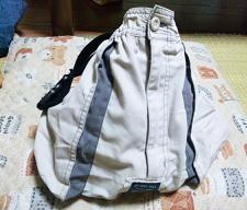 みなさん、ヾ(´ω`=´ω`)ノ オハヨォ とてもいい天気なのですが寒いくらいです。予報は晴れですが、西の空が雲っっているのが気になります。 ☆ ☆ ☆ ☆昨夜、またへんてこりんな物を作りました。これ・・・何だと思います?一応バッグなんですけどぉ・・・w表と裏の写真です。自分がはいていたズボンをリメイクしてみました。製作時間、約1時間半くらいです。旦那に「いかにもズボンで作りました、って感じだな。」と言われました^^;基本、めんどくさがり屋なので型紙も何も作らず、適当に切って縫い付けて持ち手もくっついていたベルトをちょっと改造して終了。結果、自分でもあまり使わないかな、というへんてこりんなバッグが出来上がりました^^;旦那がお尻に充てて遊んでいましたが・・・wウエストポーチみたいにして使えば周りがズボンと間違えうで受けは狙えるかもw ☆ ☆ ☆ ☆テレビの音が消える回数が増えてきました。まだしつこくアナログテレビ見ているのですが3月までに地デジにしなきゃないので困っています。車の税金もきてしまったし・・・震災の影響で、いろいろ後回しになっているだけで早かれ遅かれ入用なものは変わりないです><;他の部屋にあるテレビが地デジ対応なのですが20インチなんです。私はそれで十分なんですけどね・・・。
