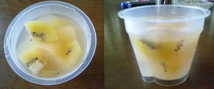 みなさん、ヾ(´ω`=´ω`)ノ オハヨォ はっきりとした雨空です。今日だけで200ミリの雨が降るとの予報です。でも今は降っていません。 ☆ ☆ ☆ ☆昨日、固まらないと騒いでいたフルーツゼリーの話しですが作りなおして冷蔵庫に入れたらきちんとできていました!(*゜▽゜ノノ゛☆パチパチこんな感じでーす^^プッチンの容器から取り出したかったのですが昨日きれいに出てこなかったので・・・^^;苦労した甲斐があって、とてもおいしく出来上がりました。リンゴを砂糖水で煮て、それからブドウとキウイを入れてさらに煮たので、果汁もいい具合に入ったようです。リンゴはまだしも、キウイとブドウを煮るというのが初めてだったので、心配でしたが・・・リンゴは柔らかくて、ゼリーに酸味がありおいしいです♪作れるプリンやゼリーがどんどん増えてきたので楽しいし、おやつに事欠かないし♪家の場所が良かったら、1日個数限定で販売したいくらいですw ☆ ☆ ☆ ☆今から娘がまた仙台に遊びに行くと言うのでバス停まで送ってきます。先月末にも行ってきたばかりなのに・・・今日は彼氏と、もう一人の男の子と3人で遊ぶそうです。昔のドリカム状態?こういう楽しみがあるからきつい仕事もがんばれるんでしょうねぇ~若いっていいわねぇ・・・w