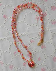 みなさん、ヾ(´ω`=´ω`)ノ オハヨォ 今日もいい天気ですが朝の最低気温がひと桁台まで下がり早出の娘がやかんでお湯をわかして車の窓の凍った氷を溶かしてから出勤するようになりました。そろそろ娘の車だけでもタイヤ交換が必要です。 ☆ ☆ ☆ ☆ここ数日、店にクレーマーが何度も電話してきたり駆けつけてきて、あーでもないこーでもないといちゃもんをつけるようになりみんな呆れて閉口しております。昨日も忙しい中、店内で大声でどなり散らしてとうとう休憩室で話し合いをするという始末に。こっちは十分すぎるほど謝罪しているのに(といっても、よく考えればこっちは悪くないんですけどね)しつこいったらありゃしない。一体、なにが言いたいのか、なにを求めているのか要は暇なんだろうなぁ~、と私は思っています。いくらお客様でも、理不尽なことまで言われる筋合いはないでしょう。こっちが下手にしか出られないもんだからいいたいことぶちまけやがって・・・従業員じゃなかったら「みんなの前で恥ずかしくないのか!」と、言ってやりたくてイライラします。かわいそうな人なんですねぇ、きっと。 ☆ ☆ ☆ ☆手がけていたネックレスがさきほどやっと完成しましたのでお見せします。今度、会社の集会があるのでしていきたくて作っていたのですが仕上げてから「あれ?ここテグス通ってない!」とか「あ、ここ色が違うや。」と、何かと不具合が生じせっせと作り直しをした結果、3日かかりました^^;本当は青色を目立たせたかったのですがいい大きさのビーズがなく、色も濃いためにこういう仕上がりにしておきました。集会まであと4日、間に合ってよかったです^^ ☆ ☆ ☆ ☆風邪がまだ治りません。昨日、休憩中にそのクレーマーが来るというので休憩室を追い出されたために洗面所で薬を飲んだのですがそのとき、薬を忘れてきてしまったようです;;出勤したら飲まなくちゃ><;こういうときに限ってあさってまで休みなし。ついてないです。