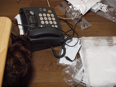 我が家の電話機&FAXが壊れました。。。突然、不通になり。。もう大変。今月は家賃の更新料に、車の税金、車検代で。。はぅ。。(T-T)お金が羽を付けて飛んでいくと言うのに。。ここで電話機を買うのか。。。辛い、痛い出費です。 犯人は、この平成のやんちゃ猫ことカノンの仕業。ちょっと悪人顔?^^; 毎日毎日、電話機の上にジャンプすれば。。そら・・壊れるわな。。。本当にイタズラっ子です。。 イタズラと言えば・・知り合いのHさん宅に、巻物状態の白紙FAXを送りつけた事もあったっけ。^^;あの時は深夜で、申し訳ありませんでした。犯人はうちの猫です。ごめんなさい。 ・・・と言う訳で^^;FAX電話を購入。 電話機の設置の間、イタズラっ子のカノンにはケージに入ってもらいます。本当に邪魔するので。^^; ケージの中で大人しくしてるカノン。もの凄く。。。つまんな~い!って、顔してます。。 新しい電話機も壊されない様に工夫する予定。。今度は壊さないでね(T-T)