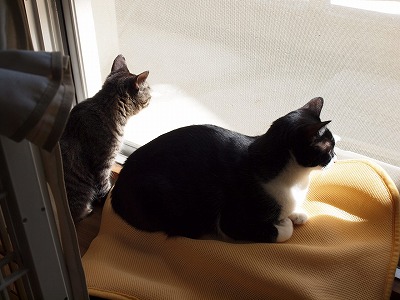 朝、和室の窓際にお京ちゃんと太陽を浴びる。外に鳥が来ているからね。楽しいようです^^昼、洗濯物を洗う。初めて見る洗濯。びっくりしてます。今まではベットだと思っていたらしい。。動揺するカノン(笑) なんとなく、ナジャも一緒に見物。 夕方、ボンと談話する。(談話?)夜、気持ちがノッテきたので軽く運動。サイコロをくわえて何処へ行く。。。ちょっと疲れたので、大好きなボンと一緒にネンネ♪幸せそうなカノン。。。 ああ・・ 私も猫になりたい。。。^^;