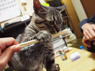 ちび助の下痢の原因が分かりました。お腹の中に猫回虫がいたのです。 ひや~(汗)発見者したのは父ちゃん。子猫の可愛らしさに ほっこりしていると、ちび助が自分の肛門様をしきりに舐め、突如、回虫を引っ張り出したそうな。。。目玉が飛び出た父ちゃん。^^; 私が帰宅すると、「 ち、ちび助 む、虫がいるぞ!! 」 と、動揺の父ちゃん。「虫」と聞いて、あー回虫いたの?と、冷静な私。回虫の存在は知っていたけど、父ちゃんは知らなかったらしい。。。知らない人がこんなの見たら。。。。 うん。 ビックリだね(笑)私も今回、虫を見るのは初めての事。変に下痢が続いていたし、丁度、回虫を疑っていたので、特に驚かなかった私^^;早速、病院で処方してもらいました。あ、という間に食欲旺盛。スゴイ勢いでご飯の要求攻撃^^;たくさん、あげたいけど。。。虫下しは強い薬なので、初回の食事は少量で。育ち盛りは、かなり不満らしく、要求はエスカレート。。^^;;もう大変です。。。(´∀`;)