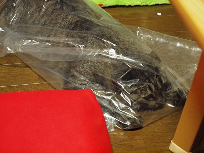 カノンはビニールが大好き。ビニールが落ちていると。。。 入らずにはいられないらしい(笑)ガサガサ音が出るのがたまらんのか?猛烈に興奮するサバトラ猫・・・なんか、楽しそう~私には理解できないけど^^;ちなみに、カノンがビニールで暴れると、他の子達は避難します(笑)最終的にはビニールを粉々にしてしまうカノン。当然。。。お掃除は私です(T0T)