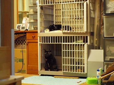 三段ケージをすっかり気に入ってしまった我が家の猫達^^ちょっとした、キャットタワー、寝る場所になっています。掃除をする時は三段ケージにナジャ、お京ちゃん、カノンを入れます。ボンは一段ケージに。 窓全開でお掃除ができます。家猫なので、窓を全開にできるのは本当に嬉しいです^^結構、ケージって檻みたいで嫌だって思ってる方、多いと思いますが、なかなか便利な物ですよ^^特に、カノンは暴れん坊で、台所で料理作ると。。。平気な顔で火の元へ行きます。何度言い聞かせても、怒っても、キンカン嗅がせても、言う事を聞かない(涙)こゆー、聞かん坊は。。料理中、ケージに入れてしまいます^^;普段からケージに慣れているので、問題ありません。結構、良い買い物したなと思っています。今回、この三段ケージのおかげで、ナジャとカノンが仲良くなったのでケージってスゴイ! と、感動しちゃいましたよ(笑)
