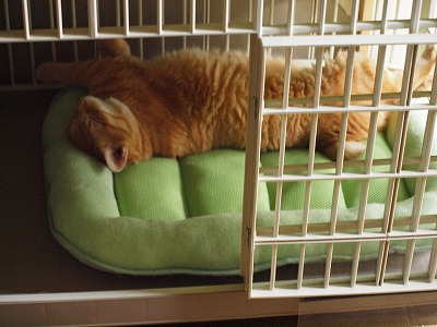 ボンの検査結果は残念でしたが、いつまでも落ち込んでも仕方ないので、考え方を変える事に。私としては、少しでもボンの負担を軽くし穏やかな日常を送れるよう、出来る限りの事をしようと思います。 やはり、水分不足は肺水腫などの苦しい病状に陥りかねないのでこのまま輸液を続けることにしました。あとは、意味無いかもしれませんがH40なる水も試してみようと思います。今の所、ボンはまだ自分で排泄も出来るし、部屋の中も動き回れるので今の状態を維持したいですね。あとは、出来れば。。。自分でご飯を食べてくれれば良いのですが。。。私も父ちゃんも仕事で帰りが遅いので、なんとかして仕事の合間に家に帰って手で食べさせています。ボンの状態を聞いた友人が、仕事に行ってる間、ボンの面倒を見てくれると言う。。非常にありがたいのですが、彼女は妊婦さん^^; もうすぐ出産なのに、妊婦さんにそんな事お願いしてよいのだろうか^^;;彼女と私は以前、同居してたので、その時、とてもボンを可愛がってくれた人。彼女ならボンも覚えているので安心だけどね。家も近いし、仕事の状況次第では、友人妊婦に協力要請するかもしれません^^;