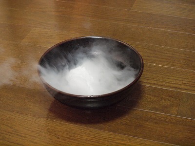 猛暑が続く中、少しでも?涼しくなりたい気持ちで。。。ドライアイスを水の中に入れてみました。あんまり意味無いかもしれないけど^^; 好奇心旺盛な2匹が早速物色。ちょっと警戒してるので、離れた場所から観察するナジャとカノン^^そこへボンもやって来た。不思議な物体に興味を示すけど。。食えないと分かると。。興味を無くす我が家の男子^^; 見向きしなくなりました。ナジャも興味を無くして、離れてしまった^^;もう少し、反応を楽しみたかった私ですが。。。カノンだけは興味津々。勇気を出して、恐る恐る接近する。どんな行動するのか、ワクワクしながら見守る私。おっと、いきなり手を突っ込んだ~熱湯だったらどうすんだよ~ こわいな~^^;手を入れてみたものの、なんだか不完全燃焼なカノン。何かが納得できないらしい(笑)ドライアイスを凝視するだけ。 もう、飽きたのかと思い。。皿からドライアイスを取り出す。出すなと言わんばかりに、押さえつけられてしまった^^;どうやら、カノンは見てるだけで楽しいらしい。もう、煙は出ないんだけどね~^^; その頃、お京ちゃんはどうしてるかと言うと。。。和室で、優雅にゴロ寝。。。 お京ちゃん・・・ 暑くてやってられないのは分かるけど。。。猫として。。。どうなのかと、思うよ~^^;