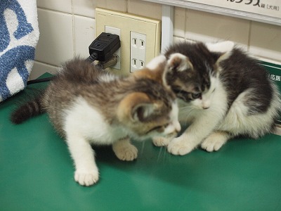 3匹の子猫の里親探しを開始して早々、いっちゃん、さんちゃんがあっさり決定。出だし好調でしたが・・・一番可愛い、にーちゃんの里親さんが見つからず。。いつでも里親サイトに募集するものの、問い合わせすらない状態。。。^^;さすがに不安。。子猫は時間が勝負な所があるので焦りました。 でも、見つかるんですね~^^里親さんは病院の患者さんの妹さん。 今回、はじめて猫を飼うそうです^^やっぱ、病院は強いですね~すぐに子猫を見れるのが利点なのでしょうか??一番可愛いにーちゃん。新しい、飼い主さんと幸せにね♪