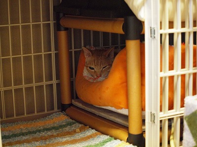 おや?この子は・・・・??捨て猫を保護しました^^; お風呂に入ってご飯を食べて手作りのハンモックを気に入りとっても眠そう。 ここは安心できる所ですゆっくり寝てね。