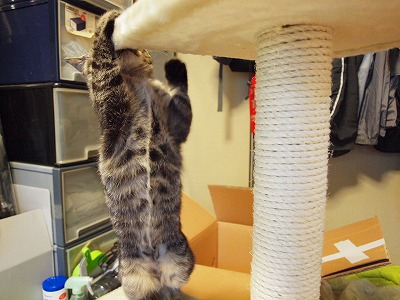 パチスロ「あしたのジョー」で4千枚の大勝をした私。ふっふっふっ。。この銭で、キャットタワー購入しました!(^0^)猫も4匹になって賑やかになったしね(笑)早速、組み立てに入ると。。。カノンが邪魔しに来ました。何やら興奮気味。(´∀`;)ダメだって!まだビスどめしてないからちょっと待っててね。 ガシ!!わー!しがみつくなー!!ビス、とめてねーってんだろ!倒れちゃう、倒れちゃうよーぱんち、すんなー!(怒)こ・・・ 固定がまだだからね!ね!あんまり動かないでー!!(必死)ガシ!だから、しがみつくなー!(怒)パンチすんなよ~!!(泣) あまりにも邪魔するので。。。タワーが完成する前に壊れてしまいそうなので。。。カノンを三段ケージの中に閉じ込めました^^:やんちゃな子猫に三段ケージは助かります。。。ほんとに。。