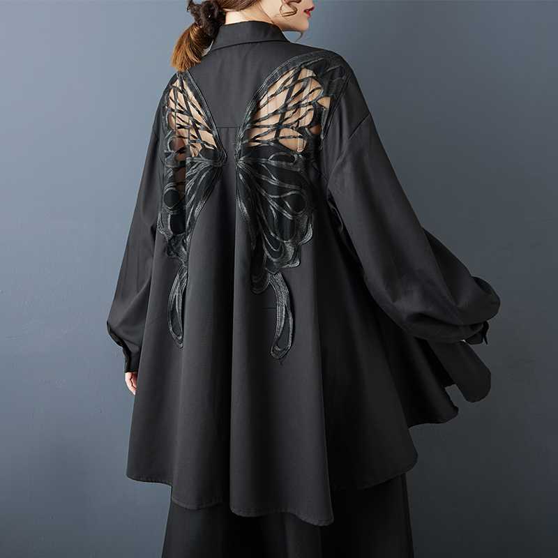 今日ご紹介するのは、こちらのバックバタフライブラウスです一見シンプルなブラックのブラウスに見えますが、実は背中に大胆な蝶の刺繍があしらわれた、個性が光るデザインなんです。後ろ姿まで気を抜かない、おしゃれ上級者さんにはたまらない一着ですよね!風にひらりと揺れる裾と、ふんわりしたバルーンスリーブが、女性らしさを引き立ててくれます。シンプルながらも存在感があるので、いつものコーディネートにプラスするだけで一気に華やかな印象になりますよ。着回し力も抜群!冬以外使える優秀アイテム「デザインは好きだけど、どうやって着たらいいの?」と迷う方もいるかもしれませんね。でも、ご安心ください!このブラウスは着回し力がとっても高いんです。ワイドパンツやスカートと合わせてゆるっとしたシルエットを楽しんだり、デニムと合わせてカジュアルダウンしたり、様々なスタイルに合わせられます。また、生地は薄手でサラッとしているので、春、夏、秋と冬以外の3シーズンにわたって大活躍してくれます。ぽっちゃりさんも安心のサイズ展開このブラウスは、普通サイズから大きいサイズまで幅広いサイズをご用意しています。ゆったりとしたオーバーサイズなので、気になる体型もふんわりとカバーしてくれて、着痩せ効果も期待できますよ。「着てみたいけど、サイズが合うか心配…」という方にも、ぜひ一度お試しいただきたい一着です!ご購入はこちらから!今回ご紹介した商品は、メルカリとBASEとラクマで販売中です。お気に入りのコーディネートを見つけて、ぜひお迎えしてみてくださいね。メルカリでの商品検索ワードは**「#secmff511017 」**となっています。BASE売り場はこちらBASE売り場のリンクです最後までお読みいただきありがとうございました!次回もお楽しみに!