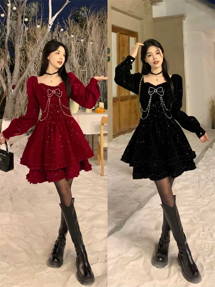 キラキラのリボンワンピースで、クリスマスやデートコーデが最強に盛れるよ🎄💖ベロア素材と胸元の大きなリボンが、上品でかわいらしさを演出してくれる✨Aラインのふんわりシルエットで、体型カバーもできちゃうのが嬉しいポイント!冬のイベントで主役になれること間違いなし🎉これ1枚で憧れのヒロインになれちゃうよ…🥺💕友達からの「その服どこで買ったの?」攻撃も覚悟してね!笑カラーはブラックとレッドの2色展開だよ🖤❤️👗この服が欲しい人はチェックしてね!メルカリやラクマ、BASEで「#skbfmv538877」とキーワード検索すると商品が見つかります!🔍