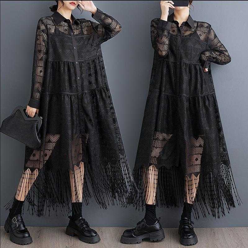 🖤まわりと差をつけるならコレ😎黒ワンピ、もう飽きた?ならこのワンピで周りと差をつけちゃお!繊細なレースと大胆なフリンジが最強の組み合わせ✨動くたびに揺れるフリンジが、主役級の存在感を放ちます。シアーな透け感が女性らしさを演出しつつ、重厚感のあるデザインがストリートにもモードにもハマる。体型カバーも叶うゆったりシルエットで、中にデニムやカラーパンツを重ねてレイヤードスタイルを楽しむのも◎一枚でコーデがキマる、最強の個性派アイテムです。🛒お買い求めはメルカリ、ラクマ、BASEで「#secmio463587」とキーワード検索しますと商品検索できます。