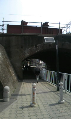この上を在来線つまり鹿児島本線が通っていて、となりでは九州新幹線の工事が行われてるよ。
