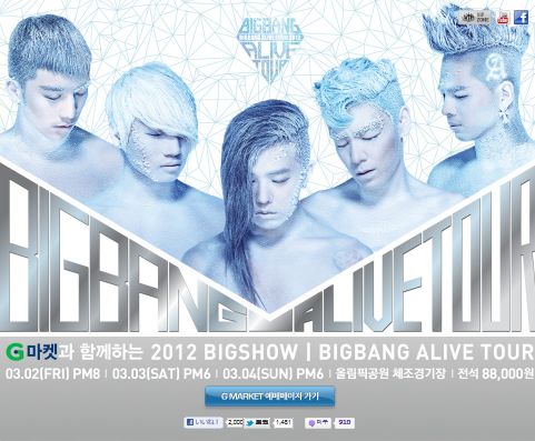YG entertainment - YG Notice18日午後8時に始まったBIGBANGの単独コンサート「2011 Big Show」第1次チケット前売り(2月25日~公演)で、21日マネージメント社YGエンターテイメントによると、2月25~27日ソウルオリンピック公園体操競技場で4万人規模で開かれるコンサート『2011ビックショー』のチケット前売りに100万人が押し寄せた。18~20日3回に渡ったオンラインチケット前売りに25万、30万、45万人が接続して熾烈な前売り競争を繰り広げた。って~凄いな~(ーー;)昨年、28日午後8時に始まったBIGBANGの単独コンサート「2010 Big Show」第1次チケット前売り(1月29日公演)で、1万2000席が5分で売り切れた。この日の前売りには、約15万人が同時アクセスし、12.5倍の激しい競争率を記録した。今年はそれをうわまってる~(>_