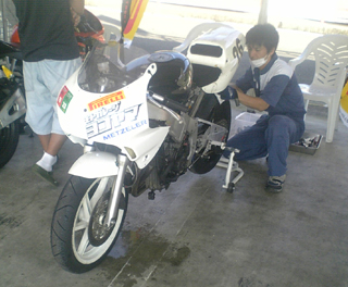 今日は、那須モータースポーツランドで行われた「ピレリ ファン トラック デイ」に参加してきました!やっと直してもらったCBR250RRをまた壊してしまいました(T_T) 1走行目、ノーマルキャブで走り、なれたところにノーマルキャブ改をつけたらめちゃめちゃ速くて、いい気になって1コーナーで突っ込みすぎてオーバーレブさせてしまいました(T_T) すごくいいマシンなのにまた壊してしまってすいませんm(__)m壊れた後の走行では友人のCB400SBを借りました! 数周慣れるまではちょっと大変でしたが、慣れるととても楽しく走れました!こういうNKマシンも楽しいですね!あ~、自分の町乗り兼用マシンがほしい!(^_^;)