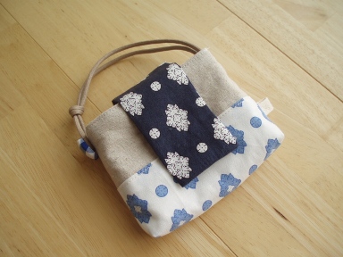 コンパクトカメラのケースを作りました。フタを開けた状態布はソレイアードワックスコードとマグネットホックは手芸ナカムラで購入したものです。