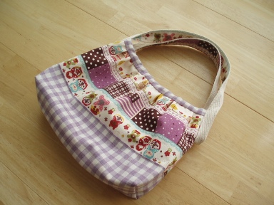 子供用の小さなグラニーバッグを作成大好きなこの本を参考にしました。布は以前、SWANYさんのsaleで購入してあったもの。今は販売されていないようですね~。ギンガムチェックは、合わせやすいので大好きです。持ち手のテープはこれを使用