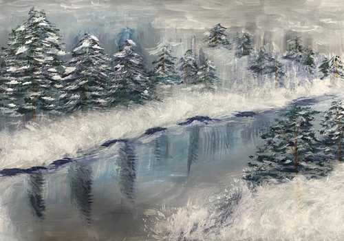 久保さんの新作は冬の景色です。風景のもつ雰囲気がとても強く感じられる作品になっています。視覚だけでなく、寒さ、この風景が持つ音色、また香りなども見る人たちに伝わってくる感じがします。 具象絵画というのは写真のように風景、人物をそのまま同じように映し出すことだけではありません。絵画というのは作者の思いとか意志が作品の中に込められた表現です。その思いというのは風景、人物の外見だけでない、作者の五感(視覚、触覚、聴覚、味覚、臭覚)で感じられたモノが含まれるのです。 久保さんのこの作品にはそういった視覚以上の五感全部を使った表現に繋がる美しさがあると思いました。寒い景色の中で、微かに感じる川の音、寒さの中で漂う香り、頬を突き刺すような寒さ、など視覚だけでない感覚をこの作品から感じさせてくれます。 更に画面から感じる透明感もとても上手く表現できたなと思いました。 久保さんのこの作品は風景の具象絵画ですが、手法を見ると、抽象的な要素がたくさんあり、画面からはリズムよく感じる響きが溢れています。塗りを重ねるだけでない、深く考えられたパターンというものが作品に存在することが感じられます。 久保さんの最近の絵からは様々な表現がどんどんと進歩しているのが手を取るようにわかり、私としても嬉しい限りです。 久保さん、とても良い作品になりました!