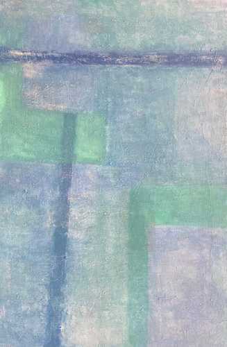 この作品はまだ完成には至っていないと高橋さんは言っています。 制作中の作品に対して、どこが完成で、どこが未完成だと言えるのか、その判断はどんな作家にとっても非常に難しいです。特に抽象絵画の制作には完成の基準となる線引きをどこの置けば良いのか往々にして曖昧になります。 最終的に作家本人の感覚的なところでこれが完成だと感じるかどうかだと思いますが、そこで最も大事になるのが作家本人がこの制作において何を捉えようとしているか、何を求めようとしているかの判断になるでしょう。 高橋さんは「この作品はまだ完成していない」と言っています。色にしても画面構成にしてもどこか違うと感じています。高橋さん自身の感覚と作品の視覚表現にはズレがあると感じています。そのズレをどうすれば修正できるか、どうすれば自分の感覚に近づけられるか、それを探っていくことも制作の大事な一部となります。 私がこうすればもしかして良いのではという助言はできますが、こうしなさいという決定権はありません。あくまでも高橋さんが自分自身の心と向き合い、自分で判断すべき大事な制作の一部だと思っています。 私は自分自身の制作において、完成という域に達するとき、心臓の鼓動が画面から聞こえてくるとしばしば言います。これは実際に作品の内側から何かが聞こえてくる感覚で、これ以上、手をかけられない、作品がもう独り立ちしてしまったという感覚に襲われ、作品が手元から離れていくと感じたときに完成したかなと思います。 そう言っても、次の日にはその鼓動が消えてしまってることもあるのですが・・・。 というわけで、作品を完成させるというのは非常に難しいですね。高橋さんが来月この作品を再度見せにくるでしょう。その時、高橋さんの判断、決定はどういったモノなのか作品を通して話し合いたいと思っています。 制作途中ですが、現作品で私が感じている面白いなと思っているところは、高橋さんがモチーフとしてよく使われている四角の面と線があります。その中で少し斜めに流れていく線を強調して使っているところがあります。キャンバスは支持体としてみれば四角です。四角となれば縦と横の線ですね。何も描かなかったら縦と横の線が基本となります。その中に斜めの線が入ると、それだけで画面に遠近感が生まれます。絵画というのは画面斜めに走る線、形をどうやって使うかで画面の中にリズムとハーモニーが生まれてきます。高橋さんの今までの作品の中で、これほど斜めを意識した線はなかったように思えます。この斜めに走る流れは高橋さんにとって新しいアプローチになるかもとふと思いました。 頑張ってください、高橋さん!