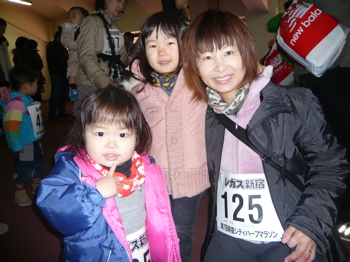 昨日は家族総出の新宿シティマラソンでした! スタートを待つデビュー戦のペコちゃん!いつも大興奮なので、ダッシュしてドテッ!と転ぶと予想していましたが、大舞台に緊張したのかマイペースでした。しっかりて走って健闘したと思います!こうやって写真で見るとピヨちゃんとソックリです!参加賞のゼリーにニッコリ!『たい!たい!(食べたい!)』と、一気飲みでした(笑)10時前に終了し、お腹も空いていたのでモスバーガーへ移動。次のピヨちゃん&HANA2キロは11時55分スタートでした。今年はとても暖かく明治公園のイベント会場も盛り上がっていましたね。ハーフの最終周回を応援しましたが、渋谷の内山くんは見つかりませんでした。その後応援に来てくれた溝ノ口のおじいちゃんとおばあちゃんと合流!2キロと10キロのスタート時間が25分しかなく、ピヨちゃんが走らないと自分がスタートに間に合わないことが判明!応援しながらペコちゃんをおんぶする予定でしたが、途中からおじいちゃんに預け、10キロに向かいました。元旦マラソン以来500メートル以上が初のピヨちゃんは、応援していた400メートル付近でもかなり後方でやってきました!HANA曰く、ピヨちゃんはあまり走るのが得意ではないようです。応援がいなくなると『もう歩いちゃう!』と言って歩きだすのです。周回してくるのを待って応援していたら10キロに間に合わないので、後を追っ掛けて写真を撮り、応援しました!写真ではうまく走っているように見えますね(笑)頑張れピヨちゃん!ちなみにHANAが履いているのはオリジナルコンバーチブルのチャコールグレーです!ウォーミングアップを兼ねて競技場まで走っていきます!途中お客さんにも会って声を掛けて頂きました。スタート地点はバックストレート付近で外に周りながら前の方へ進みます。スタート時間が近づいてきて、ピヨちゃんの2キロの制限時間もそろそろです。しかしそれらしき姿は見えません。止められちゃったかな?さて、今回のアート鈴木のスタイルをご紹介します!陽射しもあり暖かかったのですが、上はX-FITオールシーズンロングスリーブに2XUハーフスリーブシャツにバンダナです。そして今回のシューズは今話題の『NEWTON』!そしてさらに一押し商品の『アシックスコアバランスインナーパンツ』!さらにさらに!乳酸対策として『2XUコンプレッションロングタイツ』!とかなりスピード重視のスタイルです!(写真はインナー用ではありません)目標は44分前半!これで走れれば上出来ですね。そして12時20分、いざスタート!スタート後すぐに競技場を出て外苑西通りへ向かいます。スタートラインまで手元の時計で30秒。人数が多い!に加えてゆっくりなランナーも前に固まっています。これは今のマラソンブームを実感できました!ジグザク走行で、明治公園脇から神宮外苑へ!先程のピヨちゃん応援地点でおじいちゃんとおばあちゃんが応援してくれています!僕にとっては父ですが(笑)キロ表示はまったくわかりませんでした。とにかくいっぱいに追い込んで走ります。実はNEWTONを履いて走るのはぶっつけ本番なんです!土曜日にアートスポーツで再検証を行った際に、自分サイズのサンプルがあったので、試し履きなしでレースに使おうと決意しました!スタート直後からフォアフットの意識が強く、疲れてしまいました。周回を重ねることで、極端にフォアフットでなくても、体重移動ができる感覚を覚えてきました。同じ所を4周もするので、気持ち的に辛い・・・1周終わって、皇居に置き換え、竹橋を越えたところだと考えました。1周目は約10分!(スタートラインまでロスは除く)悪くない!このままキープできれば45分は切れそうだ。外苑西通りに下る坂で思い切りストライドを広げてフォアフットで着地する。今までのシューズに比べてしっかりとしたクッションもあり、反発性もある!平坦になってからもグイグイ前へ進めました!やはりコアバランスインナーパンツを履いているから腰が引けません!へばってきた3周目もゴールタイム的に見れば、落ち込みは少なかったようです。そして4周目の切り替えは自分でもビックリしました!より腰高の意識とフォアフットでの蹴り出しを大きくすることで、本当にスピードに乗るのです!最後の粘りはハムストリング側のパワーが残っていた感覚です。前に前に押し出す力が加わっていたように思います。ラスト1キロで手元の時計でチラッと40分を回っていたのは確認しました!ここからは平坦と下りなので、スピードにさらに乗れたようで、競技場でのラストスパートと合わせ、ゴールタイムはなんと44分を切って43分59秒でした!!10キロのレースなんていつ以来だろう?かなり頑張りました!家族の応援もあり(ピヨちゃんとHANAは最後の周回だけでしたが)刺激になりました。またチームZEROの方々からも応援して頂きました!ありがとうございました。そして今回のウエアリングはかなり疲労を軽減してくれたことも実感しています。まずはいつも気になっているハム