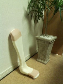 完全にギプスを外してしまうと、負荷が掛かった時に危ないので半分にしたもので動くようにしています。