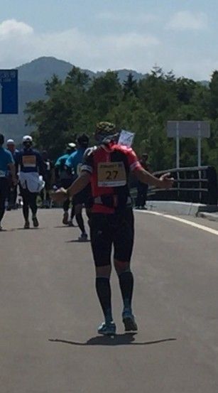 『63kmのエイドで力尽きて写真でも撮ろうかなと、ゴールドゼッケンカッコいいな。』と撮った写真になんと僕が写ってました✨