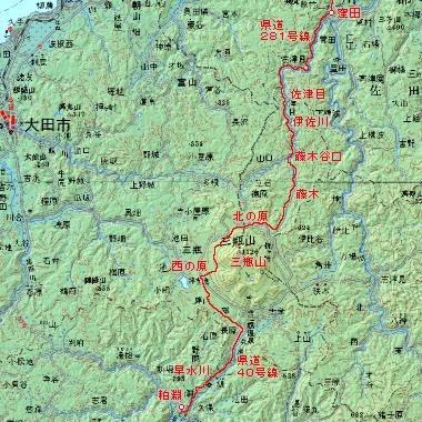 2008年05月06日(火)快晴 05:00起床、快晴でかなり寒い。惣菜パンとカップスープの朝食。今日は宿泊地まで商店がなさそうなので、粉末でポカリスエット1Lを作る。テントを撤収、防寒の雨具上着を着て、06:00窪田を出発。伊佐川に沿ってワインディングする県道281号線を、三瓶山へと南下する。国土地理院の地形図によると、この道も「中国自然歩道」になっているが、それを示す道標は見られない。宍道湖北山のようなモデルコースにだけ道標を設置するのだろう。予算がないから「東海自然歩道」のようには整備できないということ。07:20佐津目集落。米搗き水車のそばに、ベンチと草地のスペースがある。昨日はこの辺りまで来て野営する予定だった。1日4便だけの路線バスが回送されてくる。休日の朝では通学客もいないのでは・・・。08:10藤木谷口でひと休み。ここから先は更にローカルな道になり、車も滅多に通らない。そんな仙人が住みそうなところにも、人家があってひとが生活している。今は車があるから必要なものは手に入るのだろうが、昔は自給できない塩なんかを町まで歩いて行って調達したのだろう。三瓶山の麓「北の原」、09:30三瓶自然館に着く。県立の施設は家族連れで賑わっている。ここで水を補給。三瓶山に登る計画を立てていたけれど、体力温存のため、山腹を迂回する中国自然歩道モデルコースを行くことにする。 どこの山でもそうであったように、山頂に続く登山道にはひとがいっぱいでも、そうでない山道では誰にも出会わない。標高600m前後の静かな自然森のコースは、木々が発する濃厚な「森の香り」に満たされている。10:45パンとポカリスエットの昼食。「西の原」の草原に下る。日陰で休憩していると、山菜採りのおじさんに会う。「何が採れるんですか」聞くと、「ワラビ」という応え。どういう場所にワラビが生えるか説明してくれる。おじさんによると、こちらが座っているような日陰ではなく、日当たりの良い場所に生えるそうだ。県道40号線を粕渕に向かう。午後の日差しの下、森の道と違ってアスファルトの道を歩くのはつらい。早水川の対岸にできた立派な新道は日陰がなさそう。車が利用しなくなった旧道を、休み休み行く。湿度が低いから、木陰で休むとすぐに汗が引く。粕渕のスーパー「サバス」で食料・飲料を調達。 14:15今日の宿・「ゴールデンユートピアおおち」に到着。チェックインは16:00とのこと、附属の温泉施設でゆっくり汗を流す。鍵を渡されたのは3人用の広々したゲストハウス。洗濯と荷物の整理で時間を過ごす。夕食は唐揚弁当と太巻寿司。「ゴールデンユートピアおおち」、素泊4725円。窪田→粕渕:31.5km(中国一周徒歩旅行累計333.7km)