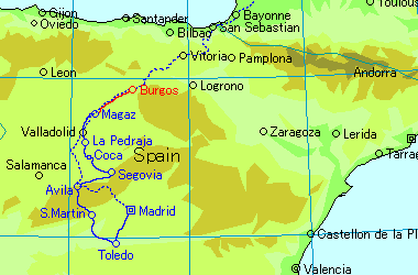 19XX年08月06日(土)Magaz から Burgos まで移動する。前日の Valladolid 以降、交通量の多い幹線道路を走ることになり、狭くて舗装のよくない路肩にウンザリだった。子供の頃、テレビで「エル・シド」というアメリカ映画を見た。中世スペインの英雄エル・シドの生涯を描いた大作。死体となった主演のチャールトン・ヘストンが、馬上に据えられ海岸を疾駆する・・・・このラストシーンは今でも記憶に残っている。エル・シド生誕の地は Burgos の近郊。彼の騎馬像がこの街の広場に建つ。