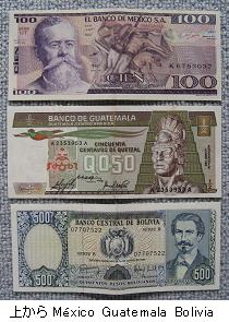 中南米4か国を旅して、M?xico 、Guatemala 、Bolivia の紙幣( Per? は貨幣のみ)が残っている。