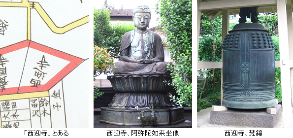 西迎寺境内の「阿弥陀如来坐像」は、元禄7年(1694年)造立の青銅製。像高が237cm 、台座高が135cm ある。梵鐘は貞享3年(1686年)鋳造の銅製、総高150cm 。切絵図にある「全勝寺」を訪れる。天正6年(1578年)麹町に創建。元和5年(1619年)現在地に移転した。