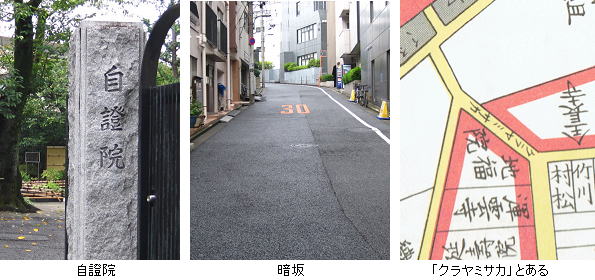 「自證院」を訪れる。寛永17年(1640年)尾張藩2代藩主徳川光友の正室千代姫の生母お振りの方を供養するため創建された。寛政12年(1800年)尾張藩から堂宇の寄進があり、使われたヒノキに節目が多かったことから「ふし寺」「瘤(こぶ)寺」とも呼ばれるようになった。切絵図には「自證院 俗ニ コブ寺ト云」とある。