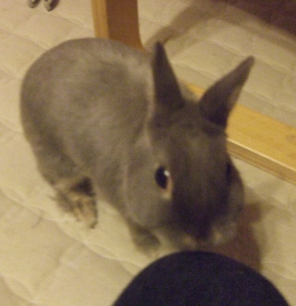 ペットシーツの重し代りのロップちゃんにスリスリ