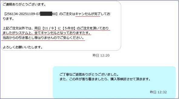 直に店舗へ問い合わせましたら・・この分とその他5品は既にキャンセル済みとか