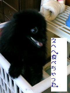 いつものように朝ポコのケージの掃除をしていました。その時間は我が家のヤンチャ坊主「ケムクジャラ」のベランポタイムでもあります。ケムクジャラ君はここぞとばかりに大喜び♪バターになっちゃうんじゃないか~??と思われるほどクルクル回っていました。ベランダにはポコの使い終わったペットシーツや●●●の捨ててあるスーパーのビニール袋が置いてありました。 もう・・・・ お察しですよね・・・ 静かになったベランダ・・・・ カサカサっと何やら嫌な音・・・・。 「あ~~~~ハギハギして●●●たべてる~~~!」 私の叫び声に超びびったケムクジャラ君 思わず口の端から2~3つぶ●●●をこぼしてました・・・。ま、ワンコにとってはごく少量ですから問題ないとは思いますが。なんですかね?チョコチップにでも見えたんでしょうか???ビニール袋の口縛ってたんですけどダメでした。その後は気が気じゃないのでケムクジャラ君を部屋に戻してお掃除再開。 「おいしかったワン。」(ケ) そのころ師匠は・・・・ 「あけてくだしゃい・・・」(ポ) 「また・・・ですか・・・。」(ママ)・・・・食べる気ないけど●●●ってどんな味?・・・・ (なんか苦そう・・・・)