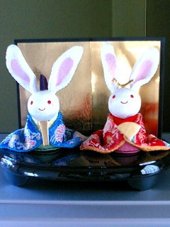 もうすぐ「雛まつり」ですね。我が家にも娘が生まれた頃、初節句のお祝いとして実家の両親が送ってくれました。けれど・・・簡単な雛人形ですが飾るのが・・・めんどくさい。こんなこと親にはいえませんね。あ~娘はおかげで女の子らしさのかけらも無く育ってくれています。先日の日曜日。休日出勤で会社に出かけていたダンナさんが娘にお土産を買って来てくれました。 ひなうさぎ。さっそくテレビの上に。やっぱり我が家は「うさぎ」ものから離れられません。何となく春~♪って感じです。今年もほんとのお雛様出さないで終っちゃいそうです。(ごめんね~娘よ。両親よ。)3月3日は「ちらし寿司」とはまぐりのお吸い物ですかね・・・。 こちらは・・・・ 「隠れナマうさぎ」です・・・。 相変わらず脱走してます。