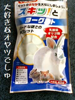 ポコは毎日お昼に決まってオヤツを一つ食べます。このヨーグルト味のタブレットがマイブームのようで大好物決まってコレを一粒だけ食べます。お昼の鐘が外で鳴り、私がポコのそばを通ると もうクレクレ催促でそわそわ。。。「はい、どーぞ」(ママ)「早くくだしゃい」(ポ)・・・いつも扉を開けて献上しているので上からだと違うものだと思っているのか・・・「待ち。」の姿勢で正面をみたまま動きません。「ポコちゃ~ん、今日はこっちからだよ~はいドーゾ」(ママ)「????」(ポ)気づきましたよ。ようやく。この一粒を食べた後は背中向けて寝ちゃいます。なんかさみし・・・**********************************************************************************ポコの つ・ぶ・や・き「パパしゃん今日はとーいところに出張でしゅ。朝の6時44分のに乗るって言ってたでしゅが、おうちを出たのが42分でしゅよ。。。。ママがバスに乗る時は6分くらい前におうちを出るでしゅ。ホントに乗れたんでしゅかね???」「ママがいっしょうけんめいいつもおこしてるのに起きれないのはなぜ???ふしぎでしゅ」 by ポコ