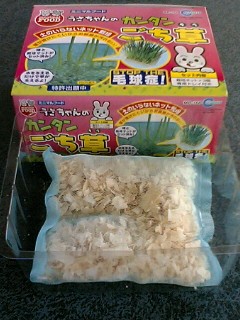 先日ムムさんのうちの「ぽぽちゃんクジ」で頂いたお品。。。ぽぽちゃんが大満足で平らげた *お草* を我が家でも早速栽培してみる事にいたしました。この様な形で入っておりました。まずはトレーの半分くらいに水を入れ種を水に浸すこと1分程度。(フムフム)箱には心強いお言葉。。。ぜひとも「ストップ」していただきましょう1分後に水を零れ落ちない程度まで捨てて日の当たらない場所にしばらく置く。・・・らしい。芽が出てきたら日のあたる場所で育てる。・・・らしい。(フムフム)さてさて、日の当たらない場所に・・・ってどこがいいかな。。。 あった!ここなんかいいんじゃないでしょうか?・・・ここ。○○さんのパソコンデスク・・・(日の当たらない場所・・・)ということでこの場所で栽培開始。ただこの場所、過去に「ぷちガーデン」数種を見事に発芽させずに終った場所でもあります。(日が当たらないから?)今度は期待してますよ~そしてこちらからも「お・ね・が・い」 「よろしくでしゅ」(ポ)「うまく作れよ!」(リンリンボール)乞うご期待!うまく出来るかな~