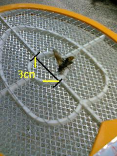 以前にご紹介した「ムシコロラケット」ですが。。。活躍していますよ~毎日とはいいませんが購入後なかなか良い成果を見せています。なんてったって「ポコ」と「もんじ」がいますので思いっきり殺虫剤まみれの部屋には出来ないので見つけたら即撃退しなくては!昨日はですね・・・恐らくラケット撃退範囲では最大級であろうと思われる「ハチ」をしとめました内側の円が3cmですから・・・羽根を広げた状態とほぼ同じでした。電撃で手足・頭がネットにくっついて離れないらしいのですが、それでも「ブンブン~」と一生懸命がんばってましたよ。コレで変に気を許して反撃にあっても怖いですからねこっちも必死でスイッチ押しっぱなし。(きっと自由の身になったら刺されちゃいますからね)そんな時に写メするな~!って感じですが、スイッチしっかり押して電撃しながら「パチリ」しました。ベランダで振り払ったら事もあろうか「ブ~ン」とフラフラしながら飛んでいきました。動かなくなったとカンチガイしないでよかった。結構大きな獲物もし止められるんだ~と実感。そんなころ・・・・彼は・・・「関係ないでしゅよ。。。お皿さんとネンネでしゅから・・・」(ポ)いいんだよ、いいんだよちょっとくらいママが怖いおもいしても、ハチさえいなくなれば・・・・・・ね