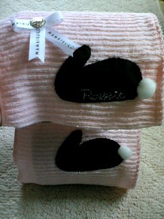 今回の手作り品はですね・・・トイレの「ペーパーカバー」です うさぎの可愛いのってなかなか無いんですよね。つたない手作り品ですが、自宅用なので良しとしましょう。こんな感じ・・・このリボン うさひくさんからポッコリーニさん宛に頂いたプレゼントのラッピングに結ばれていたものなんですぅ~かわいいリボンはとっておいて何かの時に使うんです。うさぎのシルエットのモデルはもちろんこの方「え?ボクでしゅか?」(ポ)そうです。「はずかし~」(ポ)・・・疲れがど~~っと出てたのになんでか作ってしまいました。 そんなときにこんな事・・・ありますよね。