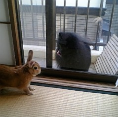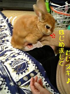 それは昨日(6日)の事。フルさんの日記にもありましたが、日頃仲良くしていただいている 大好きおねいさんが の中、に乗って我が家に遊びに来てくれました~。静岡駅の改札口で待ち合わせ。携帯のメルアドは聞いていたものの携帯番号は聞いていなかった私それらしき携帯を持った女の人を見つけつつも声を掛ける勇気がない(うさフェスのトラウマか?)一度目が合いお互いにニッコリ今思えば妙な感じ。お互いにそばに居ながらのやりとり(時差があるので、すぐ鳴ったらあの人だ~!って分かるんですけどね。)フシギな一瞬を過ごしながら2度目に目が合い「???そうですか~?」っていう感じでご対面。駅ロータリーで車の中待ちのフルさんと娘にご対面。初めてとは思えないなごやか~な雰囲気で我が家に到着。あいにくのお天気だったので家でおしゃべり。普通家に来た初めてのお客さんにはものすごく吠える「もんじょん」。ところが!な~んて甘えたかわいらしい声!そんな「甘い声」ワタクシ今まで一度も聞いたことがありません。そして・・・ポコ・・・きゃ~!初対面のおねいさんになんてこと!「はじめまして。ポコでしゅ。だいしゅきでしゅ。。。カクカク」(ポコ)なんて失礼な事を・・・しかも黒いパンツ姿の彼女にフィニッシュしてしまった笑って許してくれたけど・・・ごめんなさいね~うちのオバカ犬とオバカうさ(今回はそう書かせていただく)たちは「きれいなおねいさん」のフェロモンにノックアウトされました。そして和やかな時間はあっという間にすぎて。。。もんじの「いかないで~!」光線を浴びながらお別れの時間になりました。今度は是非お泊りで来てね~と約束しつつ。。。と~いところを遊びに来てくれてありがとう♪今度は「うさお君」を連れて遊びに来てね「うさひくちゃん」 ****************************今日は連休2日目。でもフルさん仕事、あまりの強風で出かける気にもならず・・・親子2人で「人生ゲーム」しよっかな。(でも・・・2人でゲームって微妙・・・)