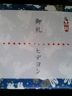 平成19年お正月「あけまして おめでとう ございます。 本年もよろしく おねがいいたします。」 みなさんはどのようなお正月を迎えましたか?我が家はなんて穏やかな???(な~んにもしない。とも言う)お正月でした。元旦は午前零時からの初詣に近所の神社へ。そしてお守りを買い甘酒をもらい・・・3つ買ったお守りのサービス(というのか?)娘に「おみくじ」をタダでさせてもらって・・・うらやましそうに見えたのか「お母さんもよかったらドーゾ」と私もやらせてもらいました。去年「凶」だった娘は「小吉」へ昇格。(でも、凶の割には全く悪い事の無かった娘。)去年「大吉」だった私は「吉」へ格下げ。(でも、大吉の割にはよくないこと続きだった私。)まあ、人生コレくらいがいいのさ。(ましてタダのおみくじだし)と娘と自分に言い聞かせて帰宅しました。お正月3が日は初売りに行ったり人生ゲームで盛り上がったり。。。ゆっくりと過ごしました。 ♪ ♪ ♪ ♪ ♪ ♪ ♪ ♪ ♪ ♪ ♪ ♪ ♪ ♪ ♪ ♪ ♪ ♪ ♪ ♪年末は31日に大掃除でしたが、疲れてお腹もすいた頃「ピンポ~ン」(やっぱり、もんじ大騒ぎ)な、な~んと!Hideyonさんから先日の「おえかき うさぎ館」<ドッキリ賞>のお礼にと「月乃ぴょん屋」さんのお菓子を送っていただきました。前から気になっていたお店だったのでとっても嬉しかったです♪大掃除で疲れていた時に甘いお菓子を贈っていただいて、なんてナイスなタイミング!さすがHideyonさん(その日の夜11時頃から巫女さんに変身されてそうな。)!とってもおいしく頂いちゃいました~どうもありがとうございました~♪今年はどんな年になるのか・・・ またきっとびっくりするくらい早く過ぎてしまうかもしれないけど うさ飼いさんの皆さんとも楽しい思い出をつくれたらな~と思っています。 そして、この方からも・・・ これからもよろしくおねがいしま~す