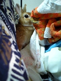 昨日は今年初のに「お爪切りあ~んど定期健診」へ。今回はちょっと間があいてしまって、だいぶ伸びちゃっていた爪。詳しくはフルさんの昨日の日記にも書いてありますが、いつもの女医さんなら診察台の上にちょこんと乗ったままのおとなしい師匠。でも、でも男の先生は「うさぎ診察」に関しては専門外のようで口の中を見るにもタオルでグルグル巻き。口の中を見るレンズを入れられた時、タオルの中でちいさく「おぇ・・・」っとしているポコの姿まぁ、前回と変わらない歯の状態だったので「今回も様子を見る。」と言う事で終了。そして問題の爪切り。師匠・・・洗濯ネットに入れられてぴっちり抑えられてさながら「ハム」のよう。「ボクもね~こわいんですよ~爪切るのぉ~」(男先生)「・・・(内心)おぃおぃ!」(私)なんだか、一生懸命ポコに話しかけてる先生。それはまさに自分に「おちつけ~」と言い聞かせているように見えました。そしてそばには『止血剤』 看護婦さんが受付のとき「今日はいつもの女の先生いませんけど・・・いいですか?」と微妙な目配せをした意味がよく分かりました。今度はいつこれるか分からないから「お願いします」と言ってしまったもののちょっと可哀想な爪切りの日になってしまいました。 只今バッグの中で凹み中・・・次回はで確認してから行こう・・・***************************************今日はフルさんの○○才(ヒント=ミミ)の。これも、アチラの日記にすでに書いてあるように昨日カッパさんにてお食事お祝い済み。自宅でご馳走作るよりは楽チンでよいのですが。何となく気分が・・・なので今日は「白くて赤いものが乗ってる丸い物」を先ほど購入してきました。去年の今日は仕事が忙しくて確か帰って来れなかったような記憶。今年はどうなのでしょうか?納豆ダイエットも大嘘だったので(肌の調子はよくなったので良しとします)今夜は食べちゃいますよ~明日から食事は控えめにしよう!(風邪がイマイチよくならないのでドカ食いは出来ないのが救いです)