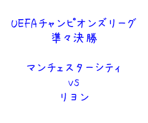 ハイライト動画DAZNjapanハイライト見所勝ち越しゴール触れずにスルーしたところにデンベレで勝ち越しゴールジャイアントキリング!?資金力、戦力的に考えてシティが勝つと予想した人が多かったはず。セカンドレグがあれば分からなかったかもしれない。ただ、今年はコロナの影響で一発勝負。5つに増えている交代枠をどう使うかも試される試合でリヨンが勝負強かった。ベスト4はライプツィヒ、パリサンジェルマン、バイエルンミュンヘン、リヨンドイツ2、フランス2そして、リーグ戦を7月以降も開催したリーグが全滅。見えない疲労が影響したかもしれません。↓ランキング参加中 クリックお願いします!サッカーランキング今年のサッカー観戦記録↓サッカー観戦 2020年記録UEFAチャンピオンズリーグ 準々決勝マンチェスターシティ×リヨン1-3