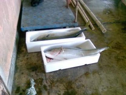 今日もいい天気でした。最高の釣り日和なんですけど・・・午後から仕事だったアシアメです。親父、釣ってきました。ブリです。明日は、初せりなので、今日早く起きて漁にでかけました。釣果は、ブリ4本。あまり反応が良くないとの事でした。生きたまま漁協に渡すのですが、2本が死にそうなので・・・ちょっと元気なうちに〆ます。〆方しだいで値段も違ってきます。明日の早朝の初せり、いくらの値段がつくのでしょう?私も、釣ってみたいです。仕事、9時半ぐらいに終わりました。それから温泉です。家族風呂に入りました。ここは壱岐島荘の家族風呂で、泊り客専用なんですが、無理を言って入らせてもらいました。コンパクトな造りとなっております。ちょっと、熱かったでーす。