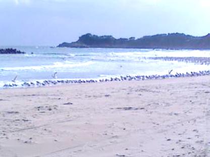 昼食の後、又、散歩に・・・近くの清石浜を歩いてみました。砂の上は歩くのが楽でいいです。波打ち際にはものすごい数の海鳥が・・・かもめでしょうか?それとも、ウミネコでしょうか?