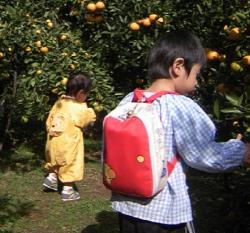 昨日6日はとても暖かな日でしたね。昨日は朝長男を幼稚園に送り、次男の入園費と園服の採寸を済ましてから、次男の育児サークルのみかん狩りにいってきました。こんな身近にみかん狩りのできるところがあったとは知りませんでした。 汚れてもいいように、とエプロンを着せました。が…次男はすでに幼稚園でどろどろ、靴もグチャグチャです三男にはつなぎの遊び着を着せておんぶしていたら寝てしまいましたでも、始まるまでが長くて次男はもうグダグダ、じっとしてくれてないし三男も重くて重くて…。そして、やっと!みかんのある場所に移動し、説明を受けてスタートです三男も起きて、二人とも楽しそうに食べたり、はさみでもいだりしていました。ひと時の幸せな時間…。 帰りはまたみかんを買うのに並んだりと時間がかかり、次男は落ち着きなく、農園のお宅にいた牛にワラを投げまくって怒られていました ぐったり。疲れたけど、子供達が楽しそうにしてたので、まぁよしとしよう